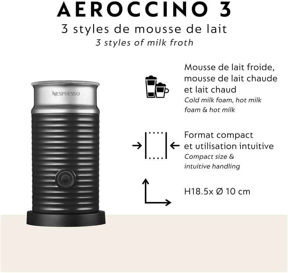 Includes Aeroccino – ultra simple and fast automatic frothing system for preparation of hot or cold milk froth.