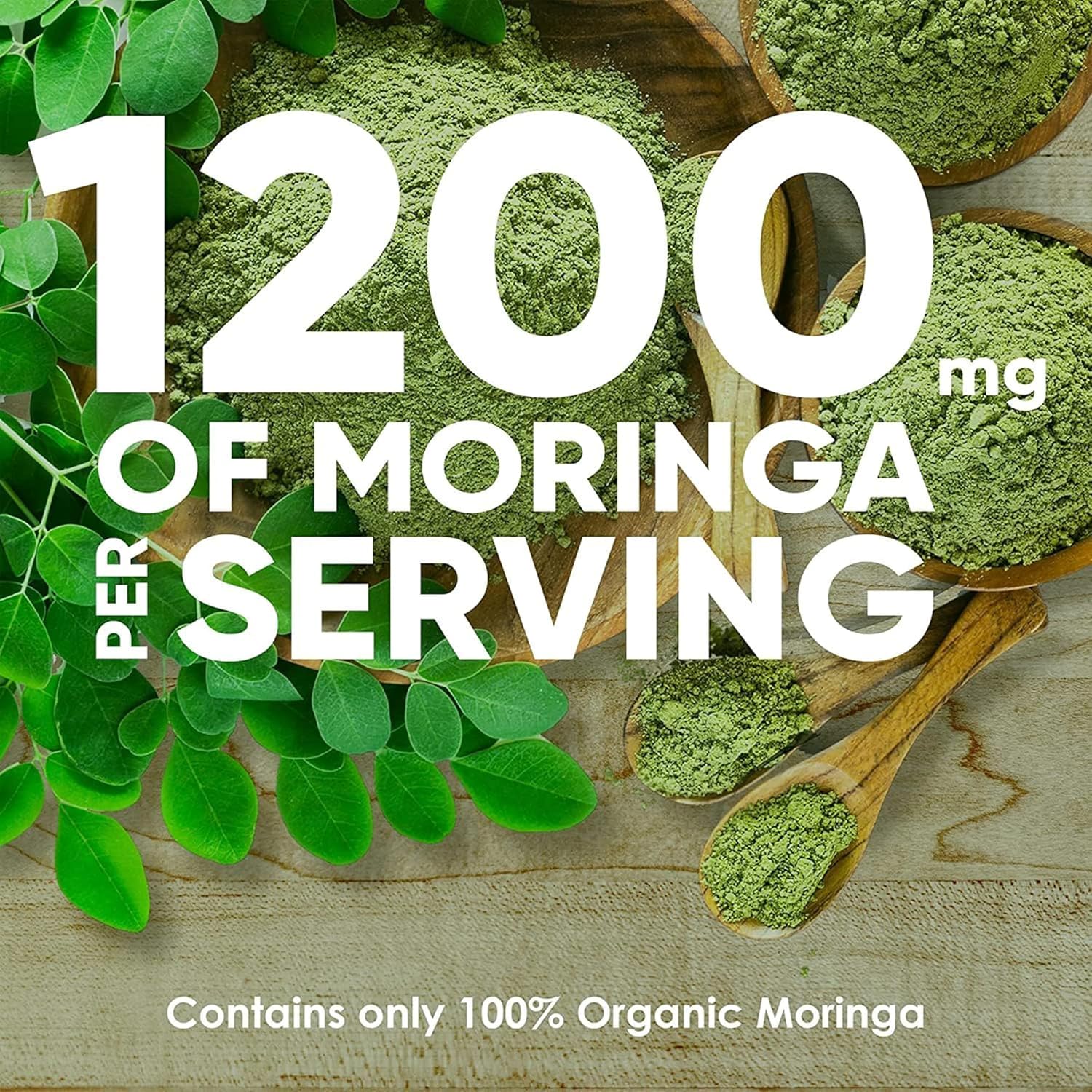 Nutrawave Organic Moringa Leaf Capsules 1200mg (2 x 600mg) for Liver Detox Cleanse, Gut Health, Hormone Balance, Gluten Free, Non-GMO, Vegan-Friendly Antioxidant Supplement, 120 Capsules