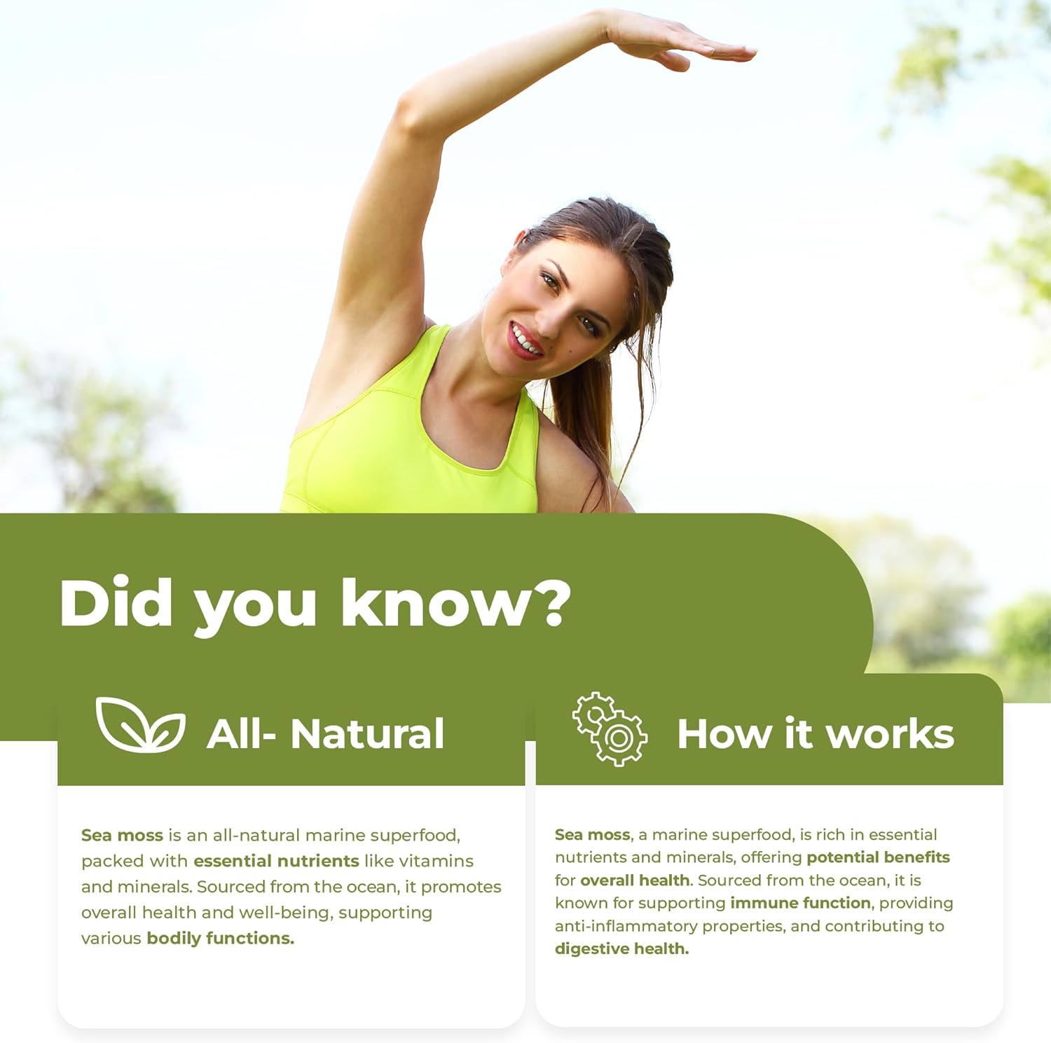 We offer a satisfaction guarantee: If you’re not completely satisfied, we’ll refund your money. Incorporate Our Certified Organic Sea Moss Capsules into your daily routine to potentially support mental clarity, heart health, antioxidants, enhanced energy, and more. Our goal is to make the purest, all-natural, healthiest products on earth.Customers say