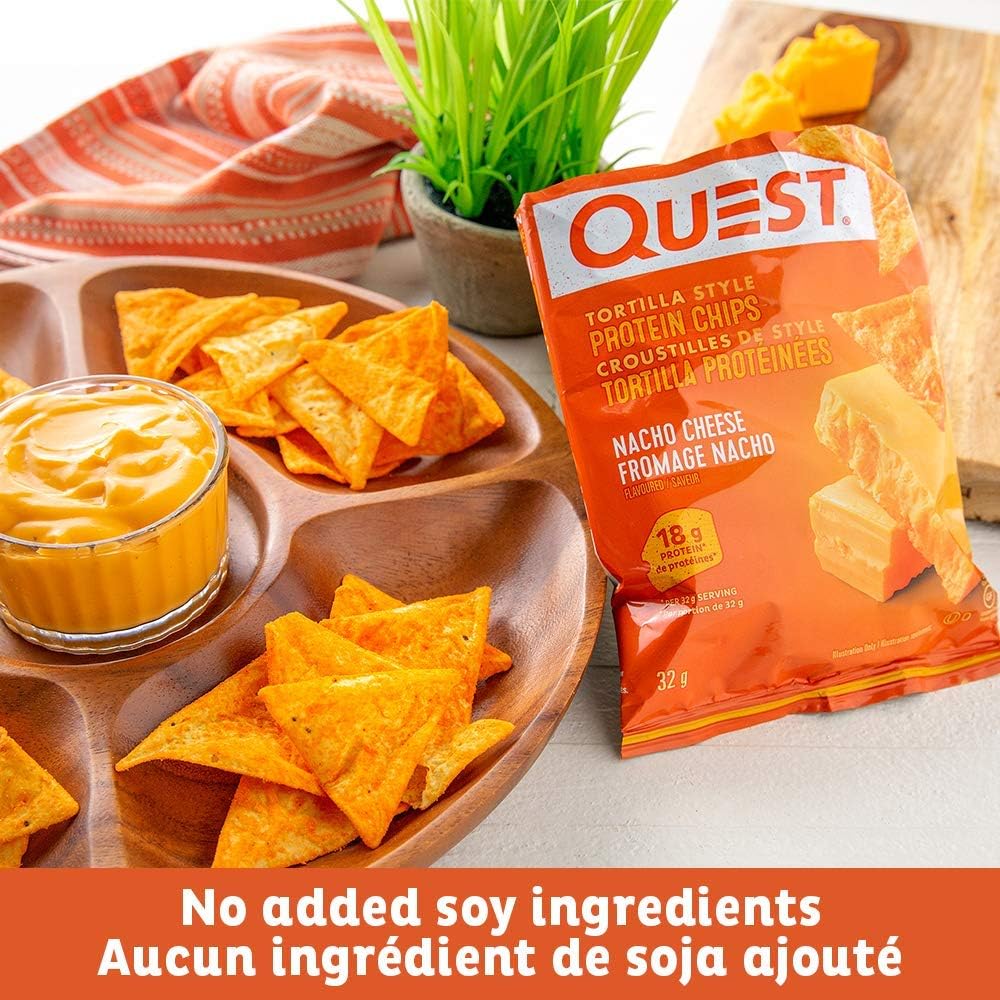• Quest Nutrition Nacho Cheese Flavour Tortilla Style Protein Chips, High Protein, Gluten Free, Baked, Not Fried, 1g Sugar, 5g Carbs, 8ct Price: $37.28