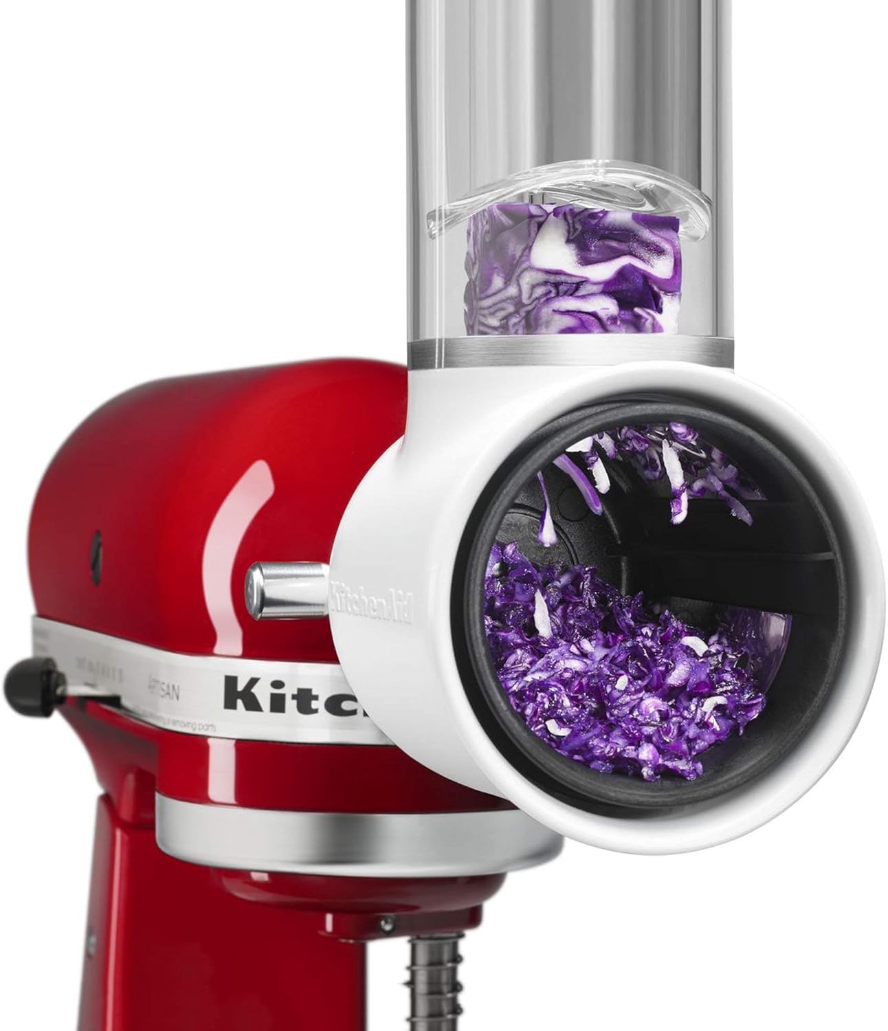 Make the KitchenAid® Stand Mixer the culinary center of your kitchen. This bundle comes equipped with the KitchenAid® Artisan® 5 Quart Tilt-Head Stand Mixer and Fresh Prep Slicer/Shredder Attachment. The stand mixer offers the capacity to make up to 9 dozen cookies in a single batch and features 10 speeds to thoroughly mix, kneadand whip ingredients quickly and easily. The power hub accepts over 10 attachments*, including the Fresh Prep Slicer/Shredder Attachment which is included in this bundle. Simply attach to your KitchenAid® Artisan® Mini Stand Mixer, and let it quickly power through the ingredient of your choice. *Sold separately.