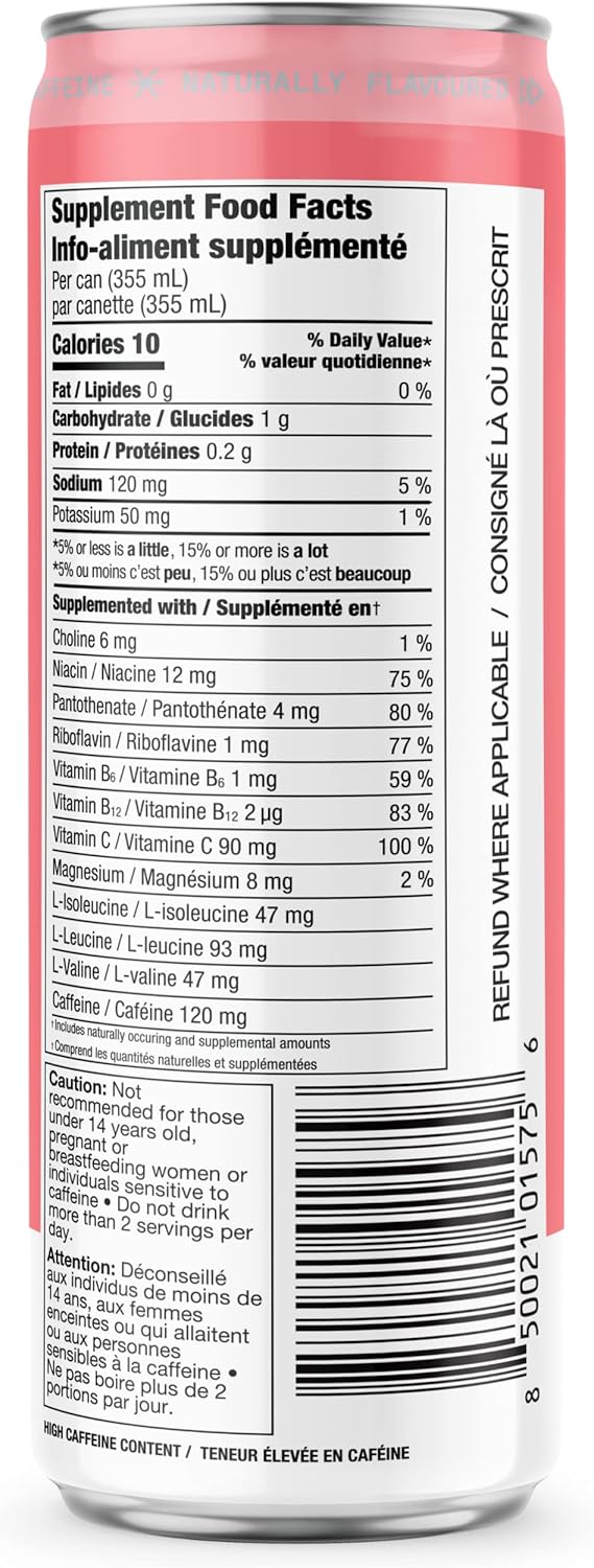 Delicious White Peach Sugar Free Energy Drink: Just like biting into a ripe, luscious, sweet white peach but without that pesky pit to deal with; This 355mL energy drink contains 10 calories and 0g total sugars per 355mL serving